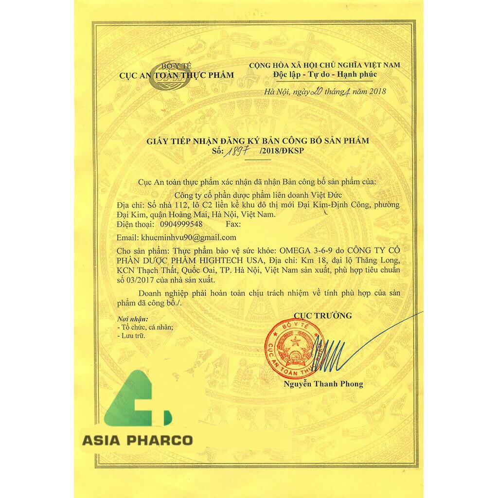 THÀNH PHẦN DẦU CÁ OMEGA 369 - Fish oil : 1000mg - EPA (Eicosapentaenoic aicd) : 180mg - DHA (Docosahexaenoic acid) : 120mg - Dầu gấc : 130mg - Dầu hạt lanh ( Flaxseed oil ) : 50mg - Dầu hoa anh thảo ( Evening primrose oil ) : 50mg - Coenzym Q10 : 200mcg - Vitamin E