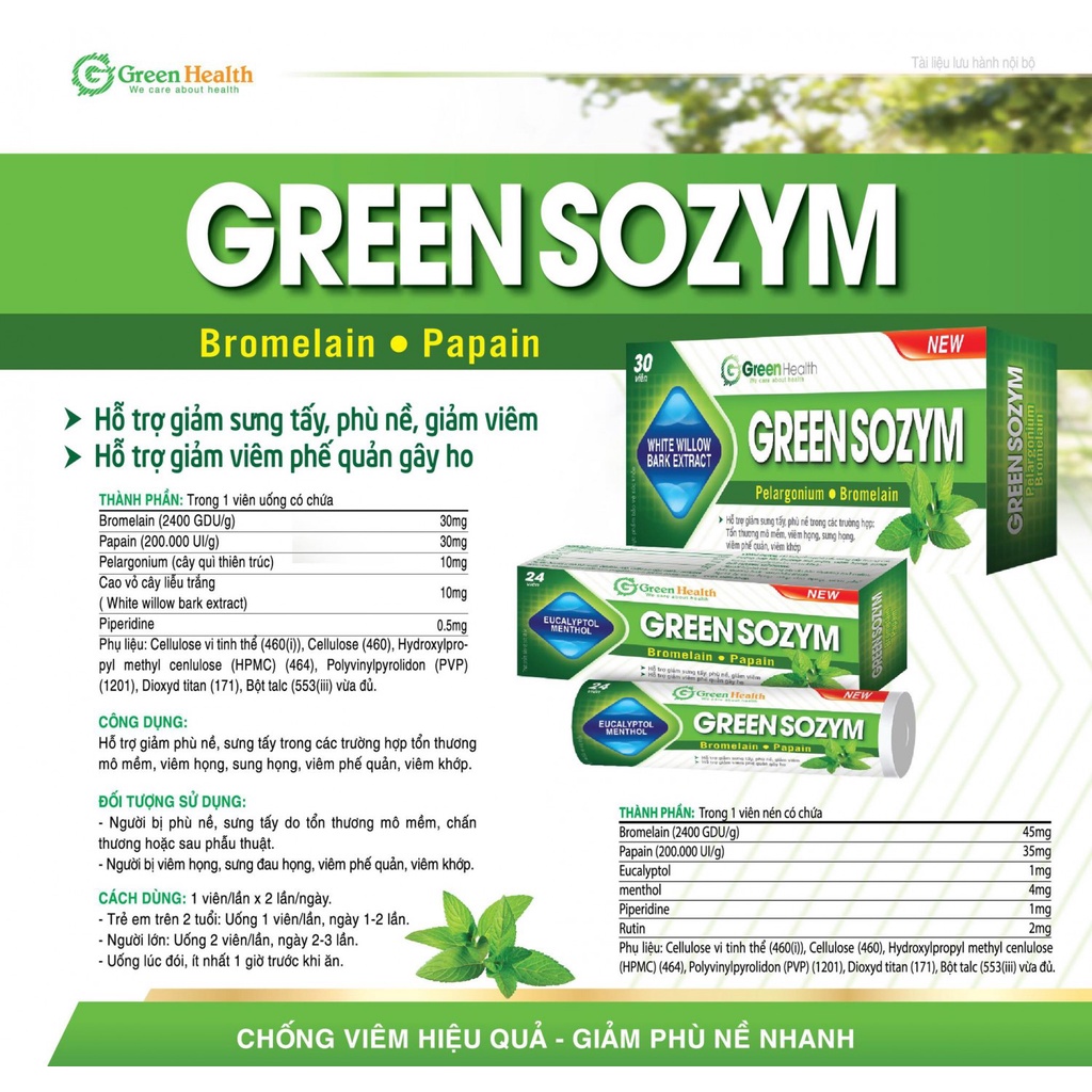 Viên ngậm Green Sozym - Hỗ trợ giảm sưng, phù nề, hỗ trợ giảm triệu chứng viêm họng, viêm phế quản