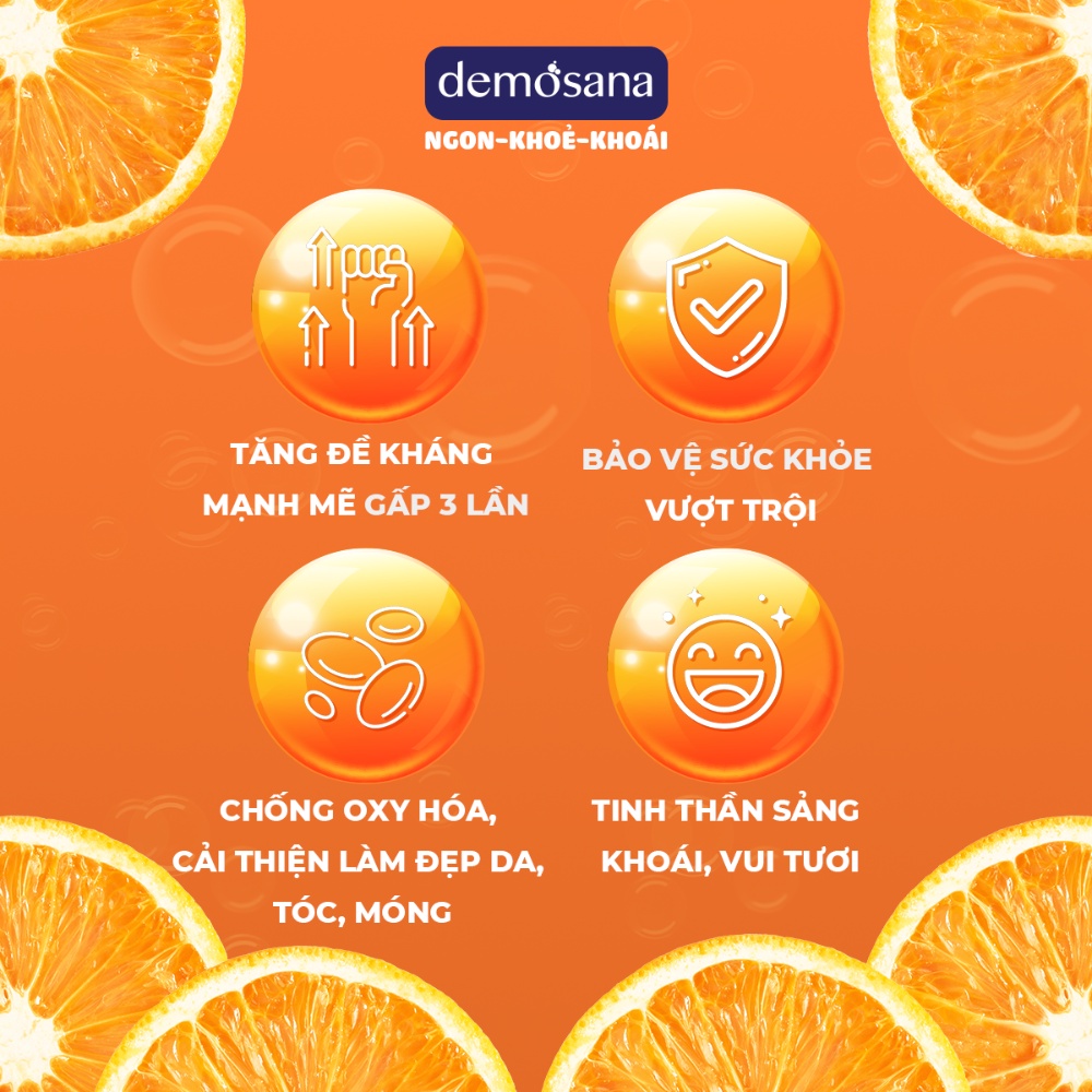 Viên sủi bổ sung Vitamin C1000 Kẽm D3 giúp tăng đề kháng hỗ trợ duy trì sức khỏe, giảm thâm sáng mịn da. Tuýp 20 viên Viên sủi Vitamin loại ĐẶC BIỆT công thức gấp 3 đề kháng & đẹp da DEMOSANA C1000 + Kẽm + D3. Xuất xứ từ CHLB Đức có chiết xuất đậm đặc từ trái cam tươi với thành phần và hương vị tự nhiên trở thành loại sủi top 1 bán chạy nhất thị trường Việt Nam. Loại sủi cao cấp của Đức này vị ngon tuyệt vời vì vậy có đến 98% khách hàng yêu thích mùi vị lựa chọn sử dụng lâu dài DEMOSANA TIÊN PHONG CÔNG THỨC MỚI, DẪN ĐẦU THỊ TRƯỜNG VỚI LOẠI SỦI 5 KHÔNG: - Không đường - Không lactose - Không Gluten - Không năng lượng dư thừa - Không nguồn gốc động thực vật biến đổi gen Chính vì vậy, Sủi C1000+Kẽm+D3 vô cùng an toàn khi sử dụng. Ngay cả các đối tượng như người tiểu đường, ăn kiêng vẫn có thể dùng. Đóng gói: Tuýp 20 viên ✨ CÔNG DỤNG CHÍNH VITAMIN C1000mg+ Kẽm+D3 GIÚP TĂNG CƯỜNG SỨC ĐỀ KHÁNG gấp 3 lần sản phẩm thông thường và làm đẹp da rõ rệt Vitamin C1000mg ngoài việc tăng sức đề kháng tối ưu, đảm bảo cơ thể khỏe mạnh trước các vấn đề của sức khỏe từ dịch bệnh phát sinh, cải thiện tinh thần vui tươi thì còn có tác dụng đáng kể trong việc làm đẹp da Cung cấp chất khoáng cần thiết cho cơ thể, giảm mỏi mệt, stress Giúp làn da sáng hơn, giảm mụn, thâm nám, làm đều màu, giảm nếp nhăn, chống lão hóa, phục hồi và nuôi dưỡng tế bào da. Tóc, móng tay chắc khỏe, bóng mượt và sáng hơn . ️ CÁCH SỬ DỤNG: 1 viên /ngày, dùng tối đa trong 1 tháng. ⛔️ Sản phẩm dùng cho người lớn từ 15 tuổi trở lên ✨ LƯU Ý TRONG KHI SỬ DỤNG ⛔ Sản phẩm Viên sủi không phải là thuốc không có tác dụng thay thế thuốc chữa bệnh ⛔ Không sử dụng cho người mẫn cảm với bất kỳ thành phần nào của sản phẩm. ⛔ Đọc kỹ hướng dẫn sử dụng trước khi dùng. HẠN SỬ DỤNG 36 Tháng kể từ ngày sản xuất HƯỚNG DẪN BẢO QUẢN Bảo quản sản phẩm nơi khô ráo, thoáng mát, nhiệt độ dưới 30 độ C Để xa tầm tay trẻ em. THƯƠNG NHÂN CHỊU TRÁCH NHIỆM VỀ CHẤT LƯỢNG SẢN PHẨM VÀ SẢN XUẤT: Công ty Cổ phần Thương mại DVN Địa chỉ: 132 Khuất Duy Tiến, Quận Thanh Xuân, Thành phố Hà Nội. Demosana offical - Sản phẩm chính hãng, nhập khẩu nguyên tuyp từ Đức - Sản phẩm có hóa đơn, chứng từ đầy đủ - Đổi trả hàng trong 10 ngày nếu giao hàng không đúng như thông tin sản phẩm - Ship cod toàn quốc, quý khách được kiểm tra hàng tại nhà rồi mới thanh toán #viensui #vitaminC #suiC Vitamintonghop #demosana _C1000; #demosanac1000+kẽm+d3; #vitamin_C_sủi; #viensuic #viensuianngonngungon #viensuicam #viensuicanxi #viensuicmulti #viensuictangsucdekhang #viencsui #viencsuichotreem #viencsuimultivitamin #viensuiduc #viensuidepda #viensuieisenvitaminc #viensuimultivitamin #viensuimivolis #csui #suimivolis #viencsui #viên_sủi #vitaminc #magie #kẽm #vitaminD3 #demosana