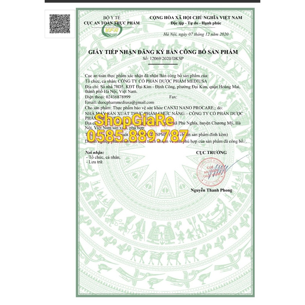 CANXI NANO PROCARE THÀNH PHẦN: Beta glucan .................................. 30mg Calcium nano........................... 1500mg Acid folic ................................. 600mcg Vitamin D3.................................. 300IU Vitamin C......................