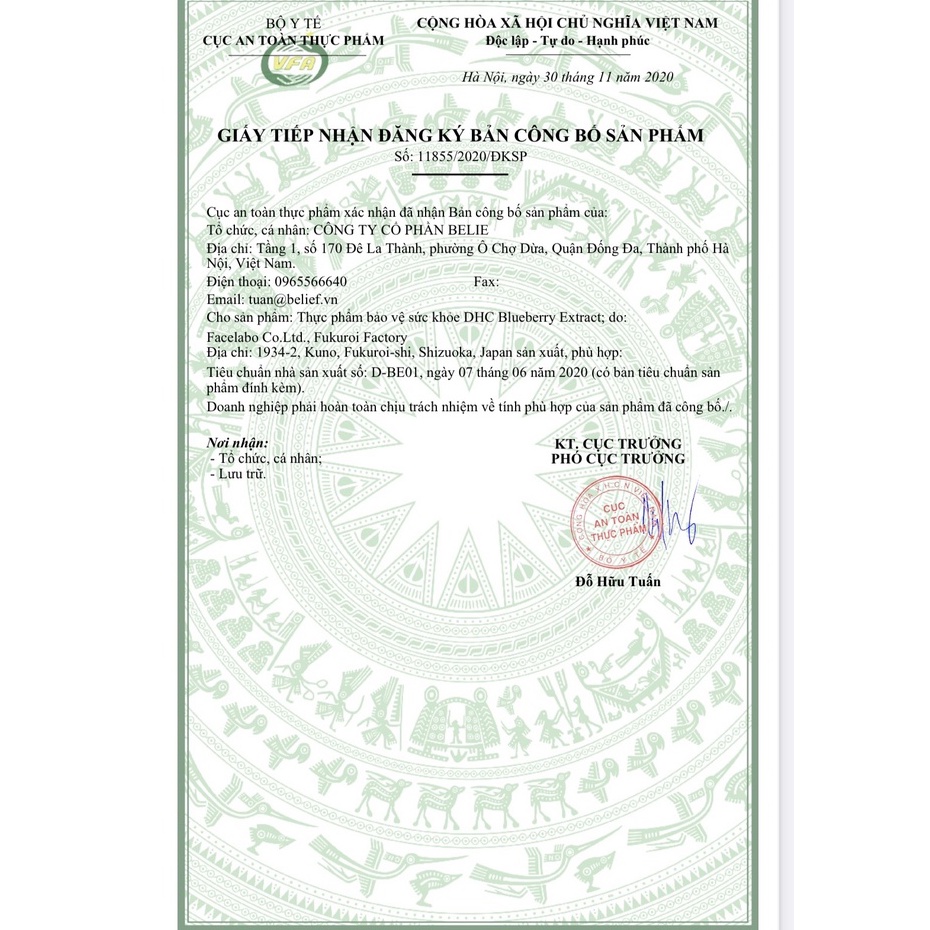 VIÊN UỐNG DHC BỔ MẮT CẢI THIỆN THỊ LỰC BLUEBERRY NHẬT BẢN GÓI 30 NGÀY 1.XUẤT XỨ: Nhật Bản 2.HÃNG SẢN XUẤT: DHC 3.QUY CÁCH ĐÓNG GÓI: Gói 60 viên dùng 30 ngày 4.THÀNH PHẦN: Một trong những "thần dược" dành cho đôi mắt đó là anthocyanin. Đây là một dạng của polyphenol có tác dụng hỗ trợ các hoạt động của mắt và tổng hợp rhodopsin - thành phần không thể thiếu để điều tiết thị giác. Theo khoa học, việt quất là một loại quả vô cùng giàu hàm lượng chất anthocyanin. Chiết xuất việt quất mà DHC sử dụng thuộc chủng loại Bilberry (việt quất đen) - loại việt quất có chứa hàm lượng anthocyanin vô cùng cao trong các chủng loại việt quất. DHC Blueberry Extract có chứa tới 170mg bột chiết xuất việt quất với tỉ lệ 36% anthocyanin. Ngoài ra, viên uống DHC Blueberry Extract còn được pha trộn thêm nhiều dưỡng chất bổ ích khác cho đôi mắt như lutein, carotenoid, vitamin B, α-linolenic, dầu tía tô. Viên uống DHC Blueberry Extract với công thức kết hợp đặc biệt từ các thành phần đa dạng hỗ trợ cho đôi mắt vô cùng phù hợp với những người làm việc văn phòng, thường xuyên lái xe, ôn thi,... Bên cạnh đó là các dưỡng chất khác trong viên uống cũng đều là thành phần bổ mắt. Lutein: Ngăn ngừa sự suy giảm thị lực do tuổi tác, bảo vệ và duy trì sức khỏe của mắt khi tiếp xúc với tia cực tím nhờ khả năng sản sinh enzym hoạt tính. Carotenoid: Giúp ổn định thị lực trong bóng tối. Vitamin B: Giúp duy trì hoạt động của các cơ và dây thần kinh thị giác. 5.CÔNG DỤNG Giảm mỏi mệt cho đôi mắt và hỗ trợ các hoạt động của mắt. Hỗ trợ tổng hợp rhodopsin giúp cho mắt nhìn rõ được trong bóng tối. Bổ sung thêm nhiều dưỡng chất giúp bổ mắt và nâng cao sức khỏe cho đôi mắt. 6.HƯỚNG DẪN SỬ DỤNG: - Cách dùng: Uống 2 viên/ngày. Uống cùng với nước hoặc nước ấm. Có thể dùng sản phẩm vào bất cứ lúc nào. Tuy nhiên, để cơ thể hấp thụ viên uống được tốt nhất thì hãy dùng sau bữa ăn. Tuân theo liều lượng được khuyến nghị mỗi ngày. Ngừng uống khi phát hiện có dấu hiệu bất thường. Không sử dụng nếu bị dị ứng với bất kì thành phần nào của sản phẩm. Trẻ em, phụ nữ có thai, đang cho con bú hoặc người đang chữa bệnh cần hỏi ý kiến bác sĩ trước khi dùng. Bảo quản nơi khô ráo, thoáng mát, tránh ánh nắng mặt trời, nhiệt độ và độ ẩm cao. Để xa tầm tay trẻ em. Đóng gói cẩn thận sau khi dùng và uống ngay sau khi mở gói. - Lưu ý: Sản phẩm này không phải là thuốc và không có tác dụng thay thế thuốc chữa bệnh.