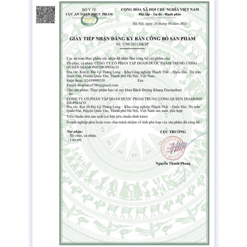 BÁCH ĐƯỜNG KHANG Được chiết xuất từ các thảo dược tự nhiên như dây thìa canh, giảo cổ lam, mướp đắng, lá xoài xanh, hoài sơn…, Bách Đường Khang được đánh giá là sản phẩm an toàn cho sức khỏe, giúp hỗ trợ điều trị bệnh tiểu đường hiệu quả. Sản phẩm được hàng triệu khách hàng kiểm chứng và đánh giá cao. 1. Thành phần cấu tạo: Trong hai viên có chứa: 1355mg cao chiết xuất tương đương: Dây thìa canh: 5550mg Giảo cổ lam: 2500mg (Gynostemma pentaphyllum) Mướp đắng( Khổ qua): 2000mg Lá xoài xanh: 2000mg Hoài Sơn:1200mg Củ cải trắng: 1000mg Lá sen: 1000mg Sinh địa: 500mg Đỗ trọng: 500mg Linh chi: 500mg Thiên hoa phấn: 300mg Bạch truật: 100mg Phụ liệu: Magnesium stearate, talc, vỏ nang gelatin vừa đủ 2 viên nang cứng. 2. Công dụng: Hỗ trợ tăng cường chuyển hóa chất béo và làm giảm đường huyết Giúp giảm nguy cơ biến chứng do tiểu đường 3. Đối tượng sử dụng: Người bị tiểu đường, rối loạn dung nạp đường huyết Người béo phì có nguy cơ bị tiểu đường 4. Cách dùng: Uống 1 -2 viên/lần x 2 lần/ngày. Người tiểu đường phụ thuộc insulin chỉ được sử dụng khi có hướng dẫn của thầy th. Chú ý: Sản phẩm là thực phẩm chức năng, không thay thế chữa bệnh.