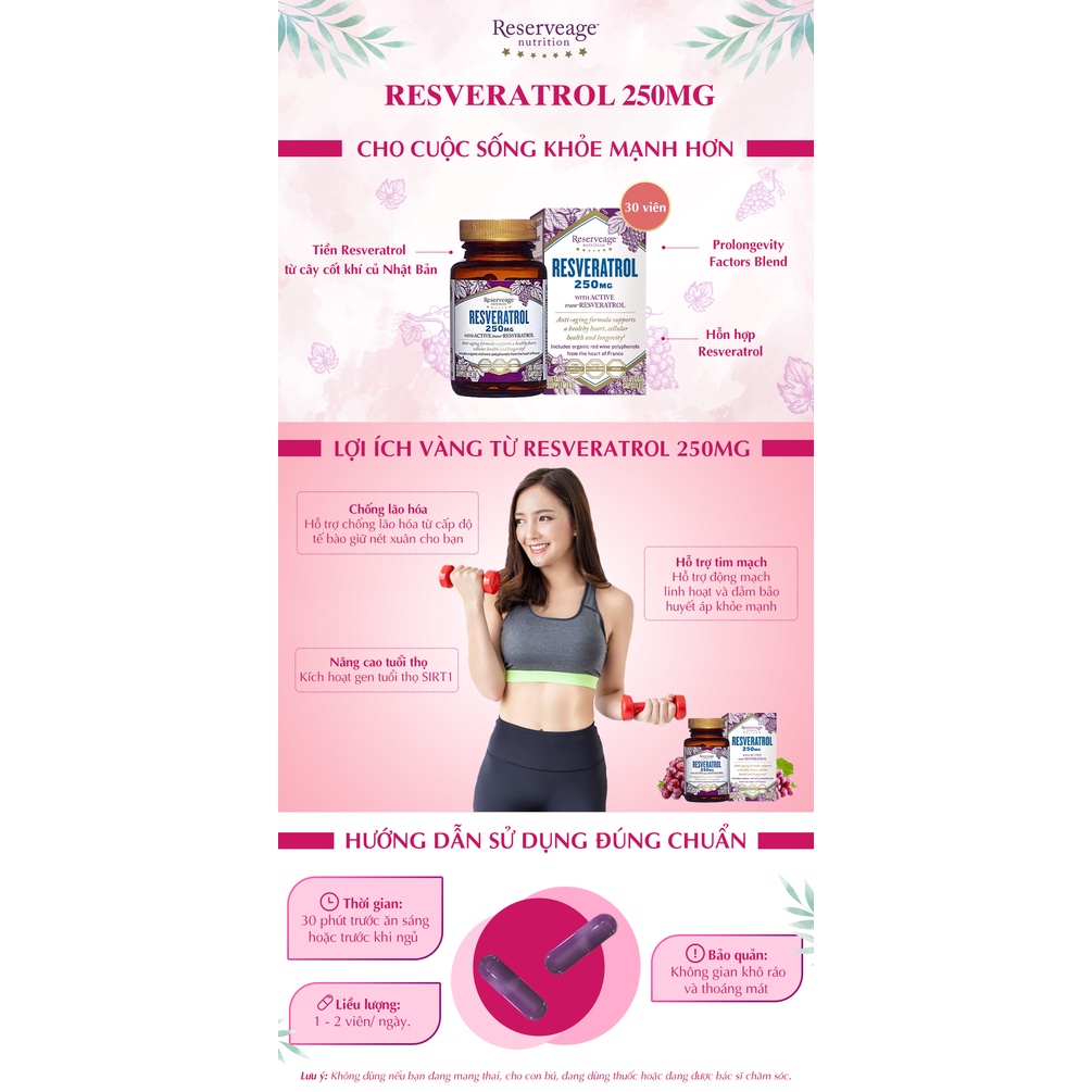 Với chiết xuất cây cốt khí củ Nhật Bản, Resveratrol 250mg bảo vệ trái tim khỏe mạnh, chống lão hóa và nâng cao tuổi thọ của bạn! Trọng lượng: 30 viên / hộp Xuất xứ: Mỹ -------------------- LỢI ÍCH VÀNG: 1. Chống lão hóa Hỗ trợ chống lão hóa từ cấp độ tế bào giữ nét xuân cho bạn 2. Nâng cao tuổi thọ Kích hoạt gen tuổi thọ SIRT1 3. Hỗ trợ tim mạch Hỗ trợ động mạch linh hoạt và đảm bảo huyết áp khỏe mạnh *Sản phẩm không phải là thuốc không có tác dụng thay thế thuốc chữa bệnh
