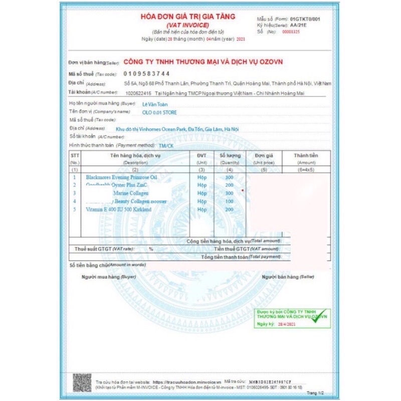 Holland & Barrett MARINE COLLAGEN WITH VITAMIN C 1000MG Sản phẩm Marine Collagen with Vitamin C Quy cách : 60v và 120v nén Thành phần cho 1 viên nén: - Marine Collagen từ cá biển : 1000mg - Vitamin C: 20mg Thành phần phụ: Microcrystalline cellulose, Hydroxypropyl, Methycellulose, glycerin, magnesium stearate,.. Công dụng: - Bổ sung collagen và vitamin C cho cơ thể. Hỗ trợ hạn chế lão hóa da, hỗ trợ làm đẹp da. Chống lão hóa, chống oxy hóa, giảm sự xuất hiện của nếp nhăn, cải thiện, làm mờ rạn da. - Dưỡng ẩm cho da, tăng độ đàn hồi, giảm khô da, giúp da luôn căng mịn, tươi sáng. - Hỗ trợ sản sinh Keratin tự nhiên cho cơ thể giúp mái tóc chắc khỏe, bóng mượt. Ai nên sử dụng Collagen: - Chị em phụ nữ, người trưởng thành trên 18 tuổi có nhu cầu bổ sung Collagen làm đẹp da. Hướng dẫn sử dụng và bảo quản: + Cách dùng: Uống 2viên / ngày trước khi đi ngủ. sau khi da quen collagen dùng 1 viên duy trì đều đặn Bảo quản: Nơi khô ráo, thoáng mát, tránh ánh nắng trực tiếp. Tránh xa tầm tay trẻ em. Không sử dụng nếu lọ/ nắp bị vỡ hoặc bị mất. Bảo quản tốt nhất trong môi trường lạnh, luôn đóng kín nắp sau khi sử dụng để tránh tình trạng vitamin C bị oxi hóa. Lưu ý: : không dùng cho người nếu mẫn cảm với bất kỳ thành phần nào của sản phẩm. Chỉ sử dụng theo chỉ dẫn. * Chú ý: Thực phẩm này không phải là thuốc, không có tác dụng thay thế thuốc chữa bệnh Xuất xứ: Anh quốc Thương nhân nhập khẩu và phân phối và chịu trách nhiệm về sản phẩm tại Việt Nam: Công ty TNHH Thương Mại Kiến Văn