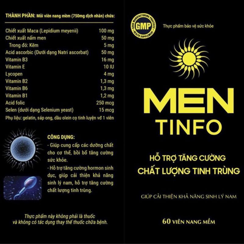Viên Uống MENTINFO Tăng Cường Sinh Lý Nam, Cải Thiện Chất Lượng Tinh Trùng Bồi Bổ Cơ Thể Hộp 60 Viên