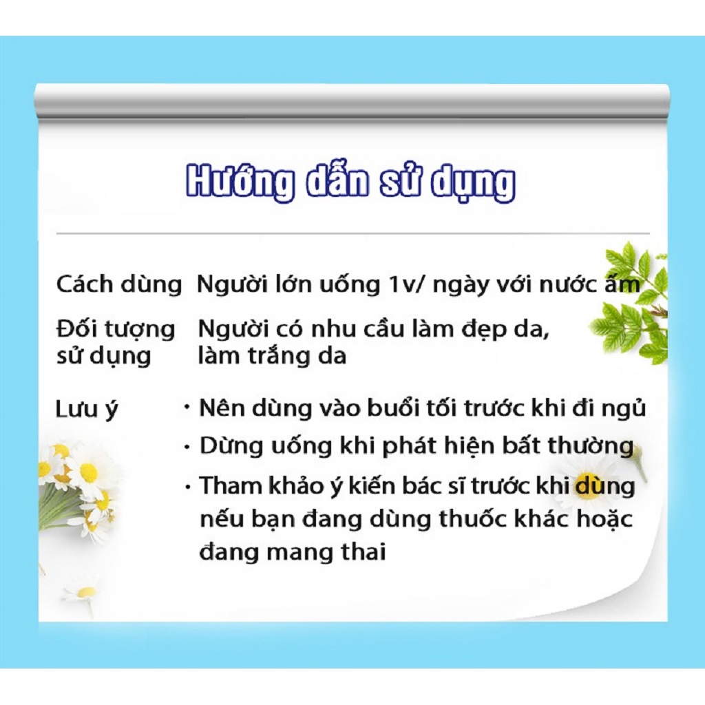HÃY MUA HÀNG Ở GLORIA MALL ĐỂ AN TÂM LÀ HÀNG CHÍNH HÃNG Viên Uống Trắng Da DHC Nhật Bản Adlay Extract Giúp đem lại vẻ mịn màng, mềm mướt cho làn da, Hỗ trợ duy trì sức khỏe của da, giúp làn da sáng mịn. Cải thiện và ngăn ngừa tình trạng khô ráp, sần sùi của làn da chớm lão hóa, nuôi dưỡng làn da trắng mịn từ trong ra ngoài lâu dài và an toàn Ngoài ra sản phẩm còn có tác dụng lợi tiểu, chống viêm nhiễm. Sản phẩm có thành phần chính được chiết xuất từ hạt Cườm thảo Hatomugi (ý dĩ) với nồng độ cô đặc gấp 13 lần thông thường (170mg), kết hợp cùng thành phần vitamin E (10mg) Thành phần: Mỗi viên có chứa: bột ý dĩ: 170mg; dầu thực vật chứa vitamin E 90% (dầu đậu nành, dầu cải, dầu ngô, dầu hướng dương, dầu bông): 11,25mg (tương đương vitamin E: 10mg) Phụ liệu: dầu oliu, sáp ong, ester glycerin acid béo, gelatin, glycerin vừa đủ 1 viên. 4. Đối tượng sử dụng: Người có nhu cầu làm đẹp da 5. Hướng dẫn sử dụng: - Cách dùng: Người lớn: uống 1viên/ngày (uống với nước hoặc nước ấm). - Lưu ý: + Thực phẩm này không phải là thuốc, không có tác dụng thay thế thuốc chữa bệnh. + Dừng uống khi phát hiện bất thường. Không sử dụng cho người mẫn cảm với bất cứ thành phần nào của sản phẩm. Tham khảo ý kiến bác sỹ trước khi dùng nếu bạn đang dùng thuốc khác hoặc đang điều trị tại bệnh viện hoặc đang mang thai. Để xa tầm tay trẻ em. Sử dụng ngay sau khi mở bao bì. Đóng túi ngay sau khi sử dụng. 6. Hạn dùng: 36 tháng kể từ ngày sản xuất. Sử dụng tốt nhất trước thời gian ghi trên bao bì. Hạn sử dụng ghi theo định dạng “năm.tháng”. 7. Bảo quản: Nơi khô ráo, thoáng mát, tránh ánh sáng mặt trời. 8. Quy cách đóng gói - Khối lượng tịnh: 555mg/1 viên Thương hiệu: DHC Xuất xứ: Made in Japan Giúp đem lại vẻ mịn màng, mềm mướt cho làn da, Hỗ trợ duy trì sức khỏe của da, giúp làn da sáng mịn. Cải thiện và ngăn ngừa tình trạng khô ráp, sần sùi của làn da chớm lão hóa, nuôi dưỡng làn da trắng mịn từ trong ra ngoài lâu dài và an toàn Ngoài ra sản phẩm còn có tác dụng lợi tiểu, chống viêm nhiễm. Sản phẩm có thành phần chính được chiết xuất từ hạt Cườm thảo Hatomugi (ý dĩ) với nồng độ cô đặc gấp 13 lần thông thường (170mg), kết hợp cùng thành phần vitamin E (10mg) Thành phần: Mỗi viên có chứa: bột ý dĩ: 170mg; dầu thực vật chứa vitamin E 90% (dầu đậu nành, dầu cải, dầu ngô, dầu hướng dương, dầu bông): 11,25mg (tương đương vitamin E: 10mg) Phụ liệu: dầu oliu, sáp ong, ester glycerin acid béo, gelatin, glycerin vừa đủ 1 viên. 4. Đối tượng sử dụng: Người có nhu cầu làm đẹp da 5. Hướng dẫn sử dụng: - Cách dùng: Người lớn: uống 1viên/ngày (uống với nước hoặc nước ấm). - Lưu ý: + Thực phẩm này không phải là thuốc, không có tác dụng thay thế thuốc chữa bệnh. + Dừng uống khi phát hiện bất thường. Không sử dụng cho người mẫn cảm với bất cứ thành phần nào của sản phẩm. Tham khảo ý kiến bác sỹ trước khi dùng nếu bạn đang dùng thuốc khác hoặc đang điều trị tại bệnh viện hoặc đang mang thai. Để xa tầm tay trẻ em. Sử dụng ngay sau khi mở bao bì. Đóng túi ngay sau khi sử dụng. 6. Hạn dùng: 36 tháng kể từ ngày sản xuất. Sử dụng tốt nhất trước thời gian ghi trên bao bì. Hạn sử dụng ghi theo định dạng “năm.tháng”. 7. Bảo quản: Nơi khô ráo, thoáng mát, tránh ánh sáng mặt trời. 8. Quy cách đóng gói - Khối lượng tịnh: 555mg/1 viên Thương hiệu: DHC Xuất xứ: Made in Japan #viênuốngcollagen #viênuốngdhc #viênuốngvitamin #tpcn #thựcphẩmchứcnăng #dhc #vienuongdhc #vitamin #viênuốngadlayextract #adlayextract #chămsócda #trắngda #đẹpda #viênuốngtrắngda #trangda #chamsocda #dhc #vientrangda #dhctrangda #duongda #trắngda #antoan #nhatban #viênuốngtrắngda #viênuốngtrắngdadhc #dhcviênuốngtrắngda #viênuốngdhctrắngda #dhctrắngda #viêndhctrắngda #viênuốngdhc #trắngda #trắngdadhc #dhctrắngda #dhc