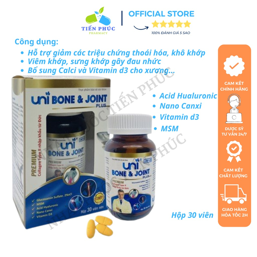 Viên uống xương khớp UNI BONE & JOINT PLUS - Hỗ trợ giảm đau khớp, viêm khớp Hộp 30 viên - Nhà Thuốc Tiến Phúc