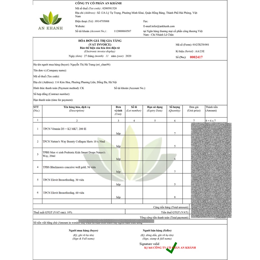 Cảm ơn bạn đã ghé thăm PharmahomeShop, mình là Hà Trang - Dược Sĩ Đại Học Dược Hà Nội - Phụ trách tư vấn trực tuyến. Để được tư vấn đầy đủ nhất hãy inbox shop ngay nhé! SHOP CAM KẾT: + Sản phẩm chính hãng 100%, hóa đơn đầy đủ. + Giá cả cạnh tranh nhất đi kèm những chế