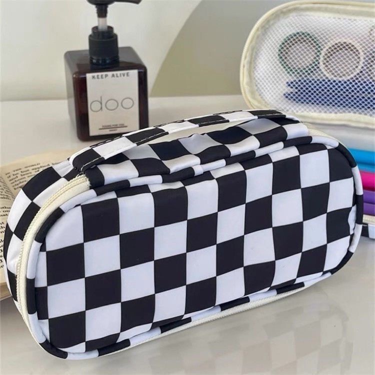 W&G Hộp Đựng Bút Họa Tiết Kẻ Ô Trắng Đen Đơn Giản Phong Cách Ins Cho Học Sinh