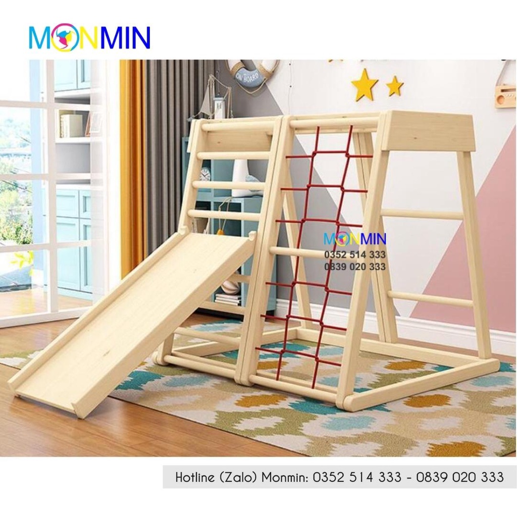 Xà đu đa năng bằng gỗ Satech - Bộ vận động leo trèo đa năng cho bé