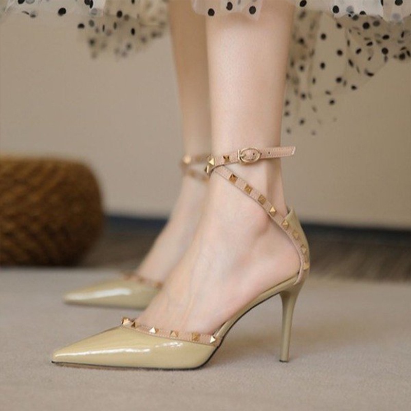 Xăng đan Cao Gót Mũi Nhọn Đính Đinh Tán Phong Cách Âu Mỹ Thời Trang Mới