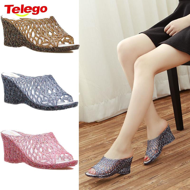 Xăng đan Nhựa Đế Dày Cao Gót Chống Trượt Trong Suốt Thời Trang Mùa Hè Dành Cho Nữ