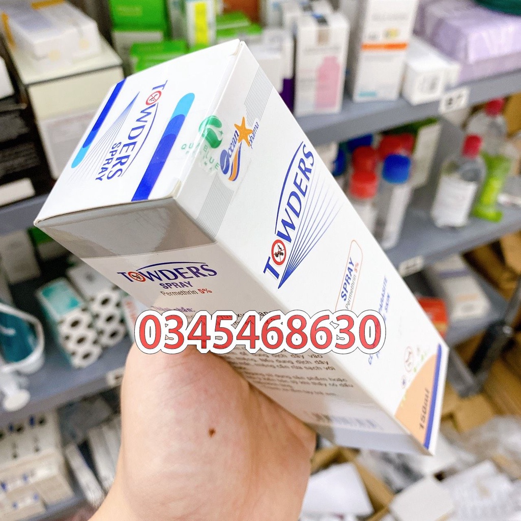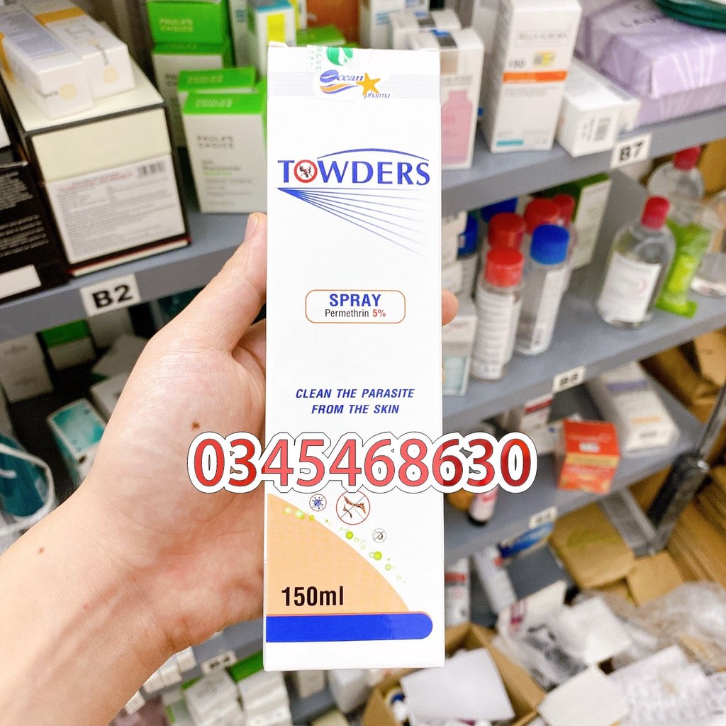 Thành phần: Permethrin 5% Công dụng - Towder Spray giúp làm sạch các loại ký sinh trùng khỏi da. - Đặc biệt sản phẩm có thể loại bỏ hoàn toàn, tận gốc các loại cái ghẻ và các loại ký sinh trùng khác... Cách dùng: - Xịt dung dịch lên da kỹ lưỡng từ cổ đến l