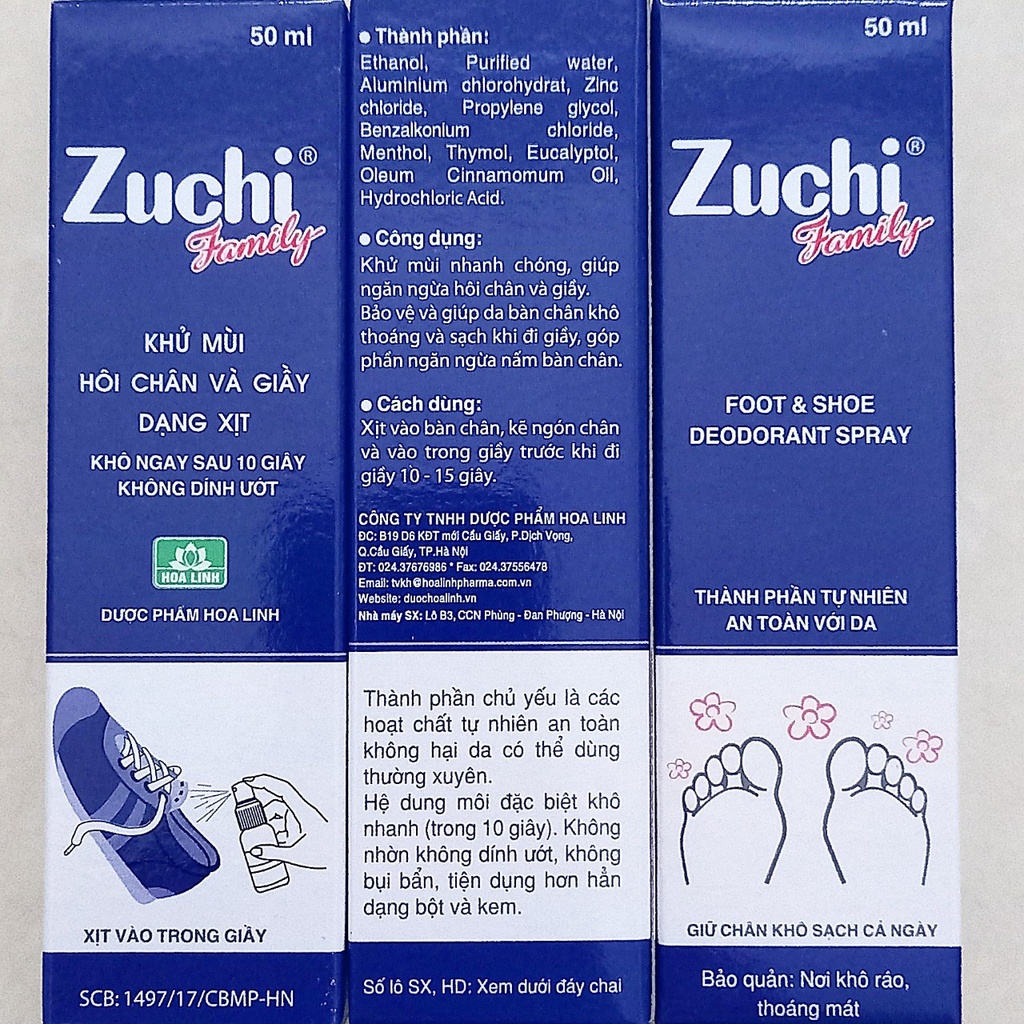 Xịt khử mùi hôi chân, hôi giầy Zuchi chai 50ml. Chống hôi chân, khử mùi tức thì, an toàn cho da