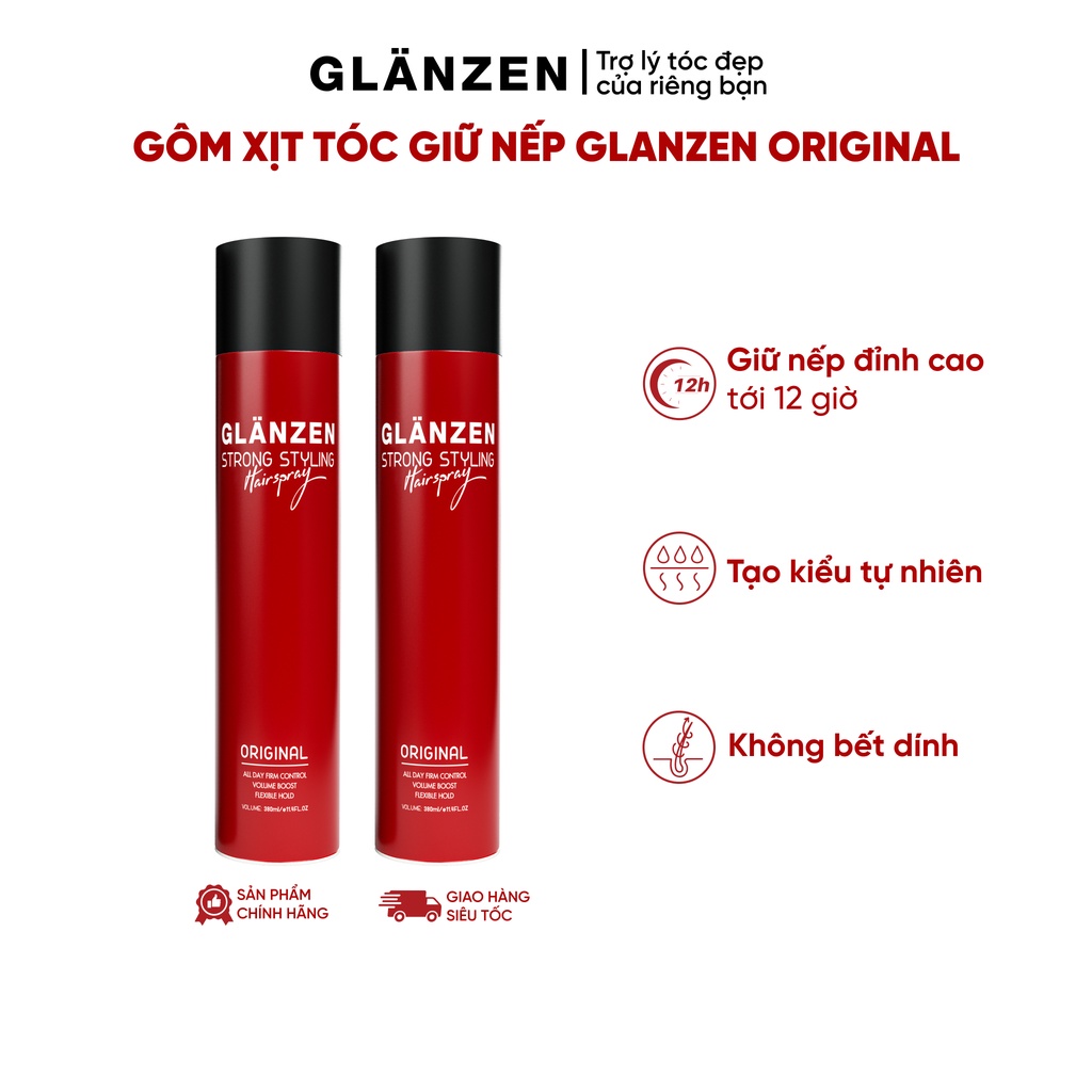 Gôm xịt giữ nếp tóc Glanzen tạo kiểu mềm mại tự nhiên dễ dàng tạo kiểu lại khi đội mũ bảo hiểm 380ml