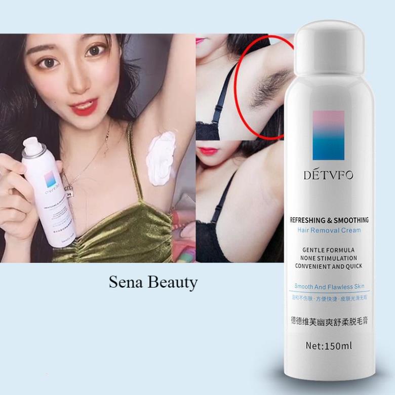 Xịt tẩy lông DETVFO Không Đau Lành Tính Dịu Nhẹ - Kem tẩy lông nách, tay, chân, lưng dạng xịt 150ml