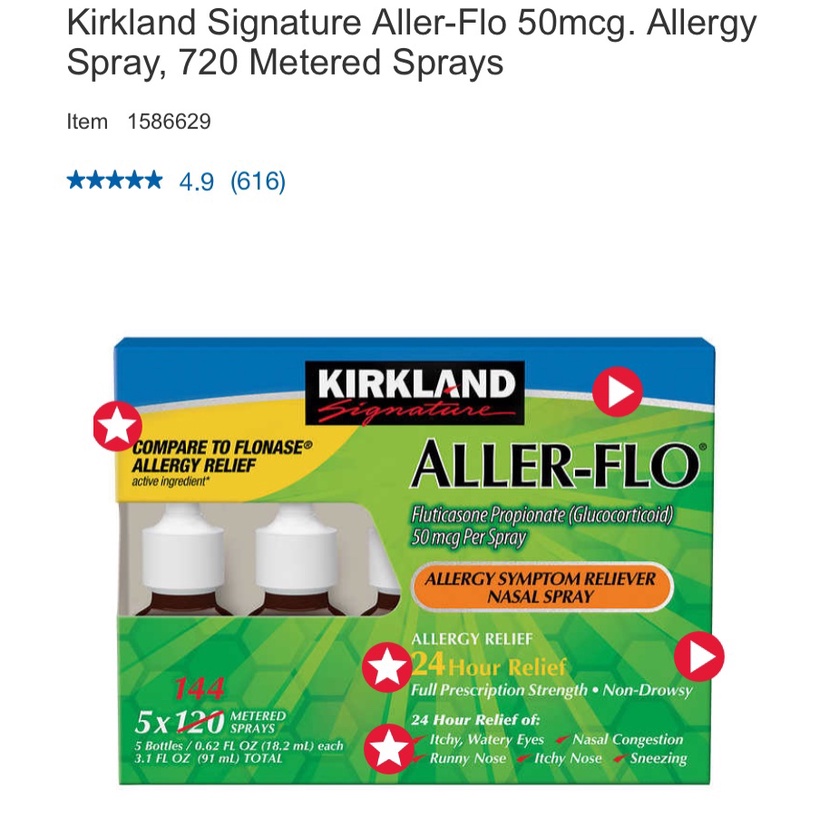 Xịt Mũi Viêm Xoang, Xịt Mũi Chống Dị Ứng Kirkland Aller-Flo 15,8ml - Mỹ Mẫu Mới Set 5 lọ