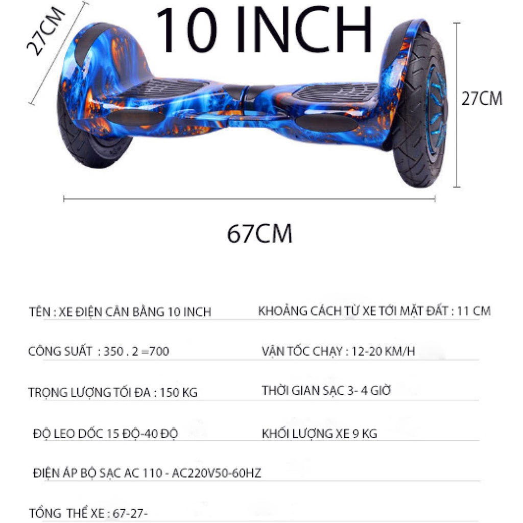 Xe cân bằng điện 10inch bánh lớn thế hệ mới, Có Loa Bluetooth, Có đèn Soi Đường, Tay Cầm, Cáo Bảo hành.