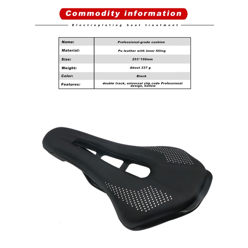 Đặc điểm: 100% hàng mới, chất lượng cao Mềm mại, thoải mái, mạnh mẽ và bền Thiết kế tiện dụng, rỗng và thoáng khí Miếng bọt biển có khả năng phục hồi cao, hấp thụ sốc Giảm áp lực lên các bộ phận nhạy cảm của cơ thể Mô tả: Chất liệu: da PU Kích thước: 25,3 * 15 * 12cm Màu sắc: đen Trọng lượng: 337g (ước chừng) Xe đạp áp dụng: Đường bộ / leo núi / MTB Gói hàng bao gồm: 1 * Yên xe đạp / Túi OPP