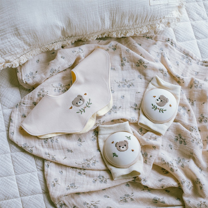 1 Bộ Yếm Ăn Cotton Nhăn Không Thấm Nước Hai Lớp Có Thể Điều Chỉnh Cho Bé Sơ Sinh