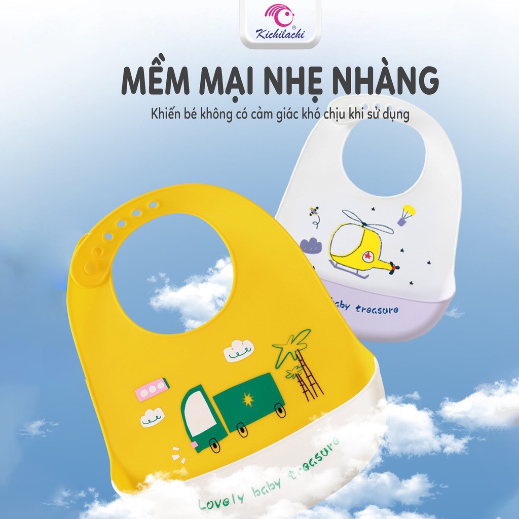 Yếm ăn dặm silicon cho bé Kichilachi có máng dễ vệ sinh, an toàn cho trẻ nhỏ - MINIBOO