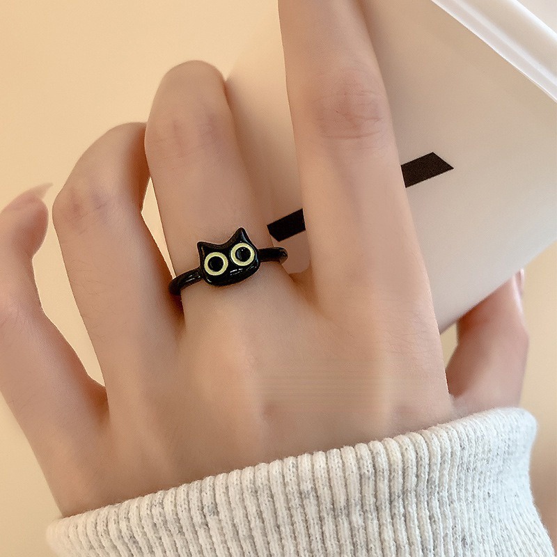 Y2k Nhẫn Hở Hình Quái Vật Mắt To / Thỏ Hoạt Hình Phong Cách punk Vui Nhộn Sáng Tạo Có Thể Điều Chỉnh Được Cho Cặp Đôi