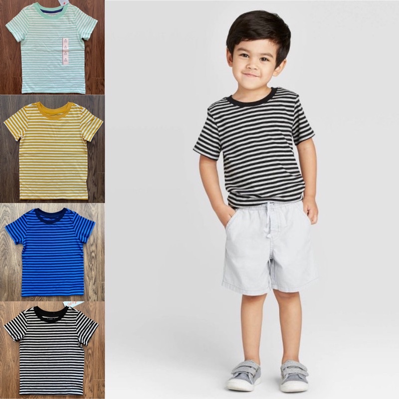 Áo Thun cotton Cổ Tròn Tay Ngắn Dáng Rộng Họa Tiết Kẻ Sọc Thời Trang Cho Bé Trai