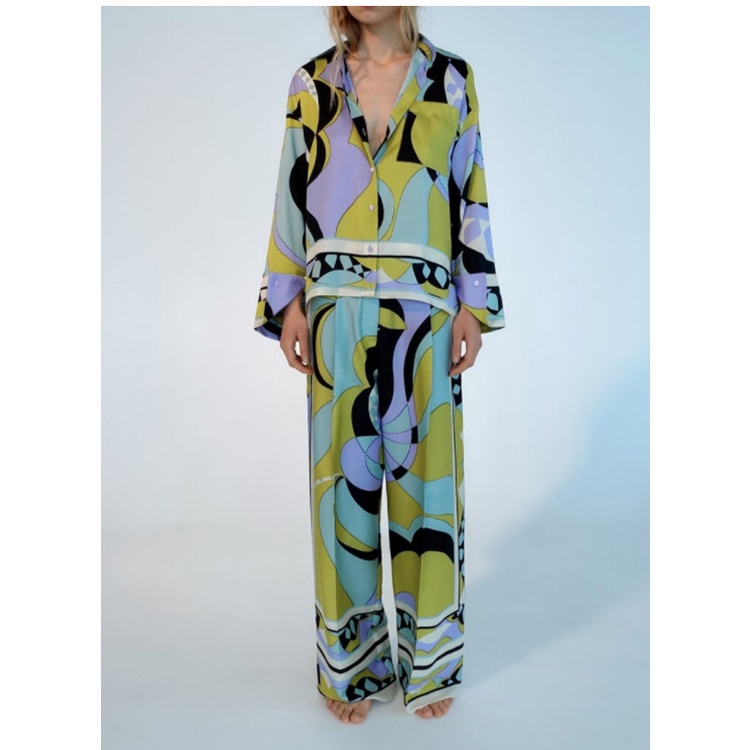 Bộ Áo Sơ Mi In Họa Tiết Động Vật + Quần Ống Suông Thời Trang Xuân Hè Zara 232675074 2714074